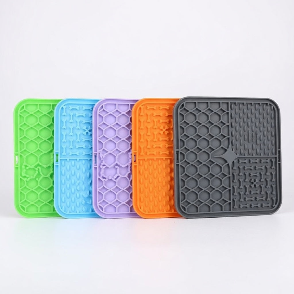 Slickmattan håller hunden lugn med godis medan du duschar eller klipper klor.